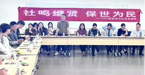 近日,劳动与社会保障专业在江安校区第一教学楼举行了一场别开生面的2022级本科师生见面会。罗亚玲、罗哲、吴敏、沙治慧、张浩淼、黄国武、彭峰、吴茜玲、曾路遥等9位老师和全班41位同学一起参加了这场别具意义的盛会。见面会由2022级劳动与社会保障专业组织委员杨佳瑞同学主持。