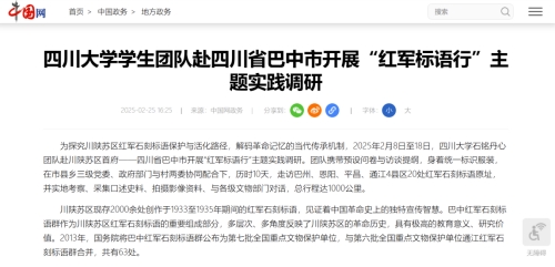 PA视讯游戏官网学生团队赴四川省巴中市开展“红军标语行”主题实践调研