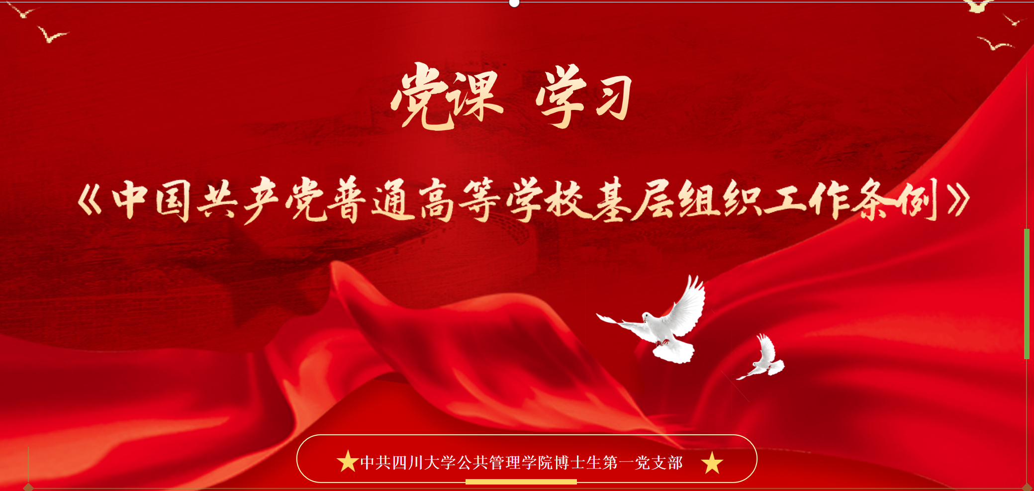 9月26日19:00,PA视讯游戏官网博士生第一党支部在萃文楼214教室开展了“学条例、强党性、明任务”党课,组织所有党员学习《中国共产党普通高校基层组织工作条例》和《中国共产党党章》,会议由支部书记李岚老师主持,通过线上线下相结合的方式举行。