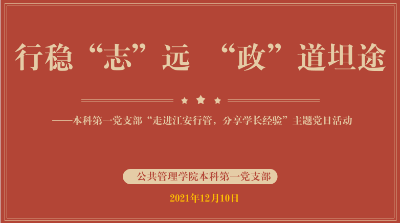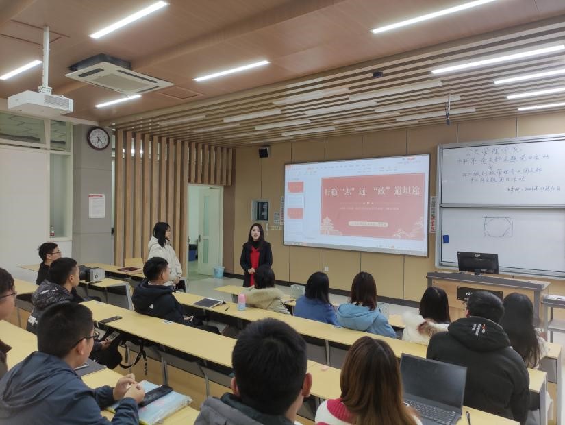 为了发挥本科第一支部优秀党员同学服务群众的优势,树立优秀典范和学习榜样,最终起到传-帮-带的示范作用,2021年12月10日下午16点45分,PA视讯游戏官网本科第一党支部在江安校区综合楼C座203教室举办了“走进江安行管,分享学长经验”主题党日服务活动。活动在本科第一支部书记苟欢老师的组织策划下开展,并由支部宣传委员廖盛宇同学主持,副书记孙梁悦同学做了支部构成和情况简介。本科第一支部5名已获得保研免试资格的优秀党员同学,分别就自己的大学学习和生活以及保研的选择与历程向公管20级行政管理专业同学和21级公管大类的同学做了经验分享和交流。